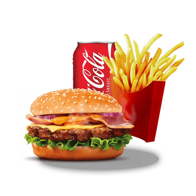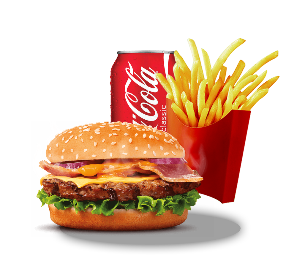 Leckerer und frischer Hamburger - Pommes - Softdrink